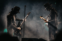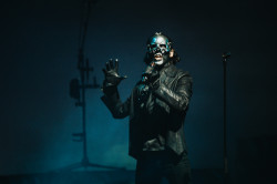 © Andrej Hresan / musicserver.cz Vždyť ten překrásný papežský hábit ve fialové barvě, který na jeho fanoušky kouká z každé promo fotky, si nechal jen na jedinou píseň - "Majesty". A to na něj ani nebylo pořádně vidět, protože skladbu odzpíval na stupínku až za bicími. Později si ještě navlékl na "Year Zero" a "He Is" jeho skromnější, mobilnější verzi, ale jinak se tolikrát akcentovaná teatrálnost do kostýmů příliš nepromítla a frontman si kromě masky a ryze černých kalhot a košile jen tu a tam prohodil sako za bundu a naopak. Na kapelu, jíž jsou divadelní prvky vlastní už dlouhá léta, to bylo trochu málo.