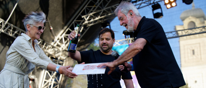 Michala Prokopa. Oceňovaný umělec a někdejší politik na ČT Art Fontána stagei především pokřtil své skvělé album "Ostraka", které mu při křtu držela právě zmíněná kolegyně.