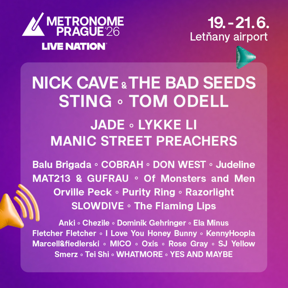 Metronome Prague 2026 už dřív oznámil jména jako Nick Cave & The Bad Seeds, Sting, Jade, Manic Street Preachers nebo The Flaming Lips. Vedle nich festival sází i na současné trendsettery a zástupce nové vlny: Chezile, COBRAH, Ela Minus, Fletchr Fletchr, Judeline, KennyHoopla, MICO, Tei Shi a YES AND MAYBE.